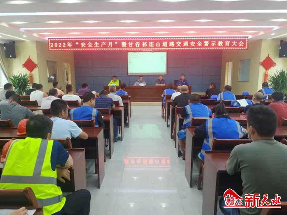 新天水讯【特约通讯员 李富军】为进一步强化道路交通安全管理工作,及时消除道路安全隐患,预防和减少道路交通事故的发生,确保全县道路交通安全畅通有序。近日,甘谷县公安局交警大队会同县运管局召开祁连山水泥厂道路交通安全警示教育大会,为企业工作人员和运输车队驾驶员开展道路交通安全知识培训。