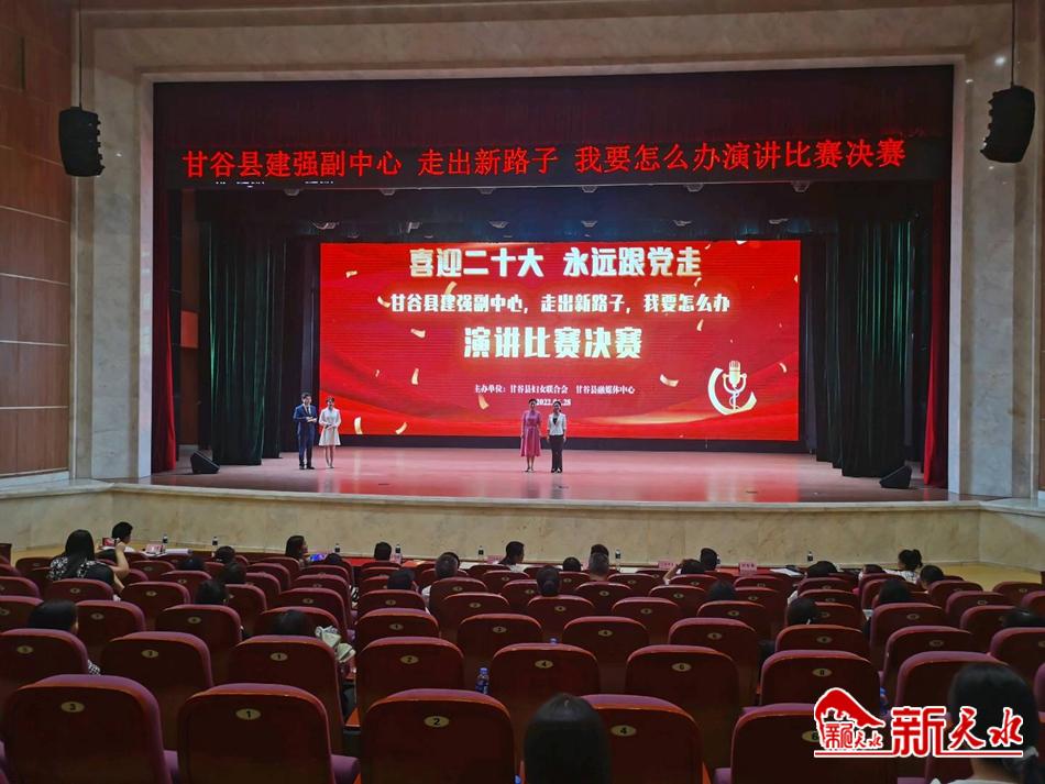 新天水讯【特约通讯员 武建峰】 6月28日,由甘谷县妇女联合会、甘谷县融媒体中心联合主办的甘谷县“建强副中心、走出新路子、我要怎么办”演讲比赛决赛在县剧院大礼堂举行。