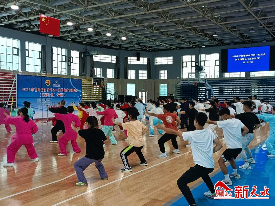 新天水讯【记者洪野】6月27日,2022年甘肃省健身气功一级社会体育指导员(东部片区)培训班在麦积区道北群众文化体育活动中心开班。