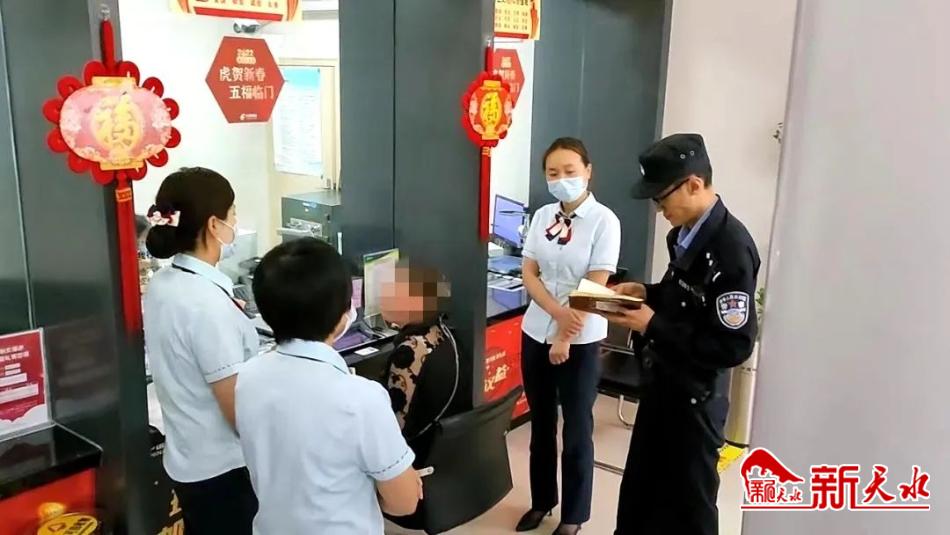 6月22日,清水县公安局城关派出所民警接到永盛路邮政银行网点工作人员电话报警,称有一位中年妇女可能被电信诈骗,不听工作人员劝阻,执意要给诈骗分子汇款,请求民警前往劝阻,接到报警后,民警立即前往该银行网点。