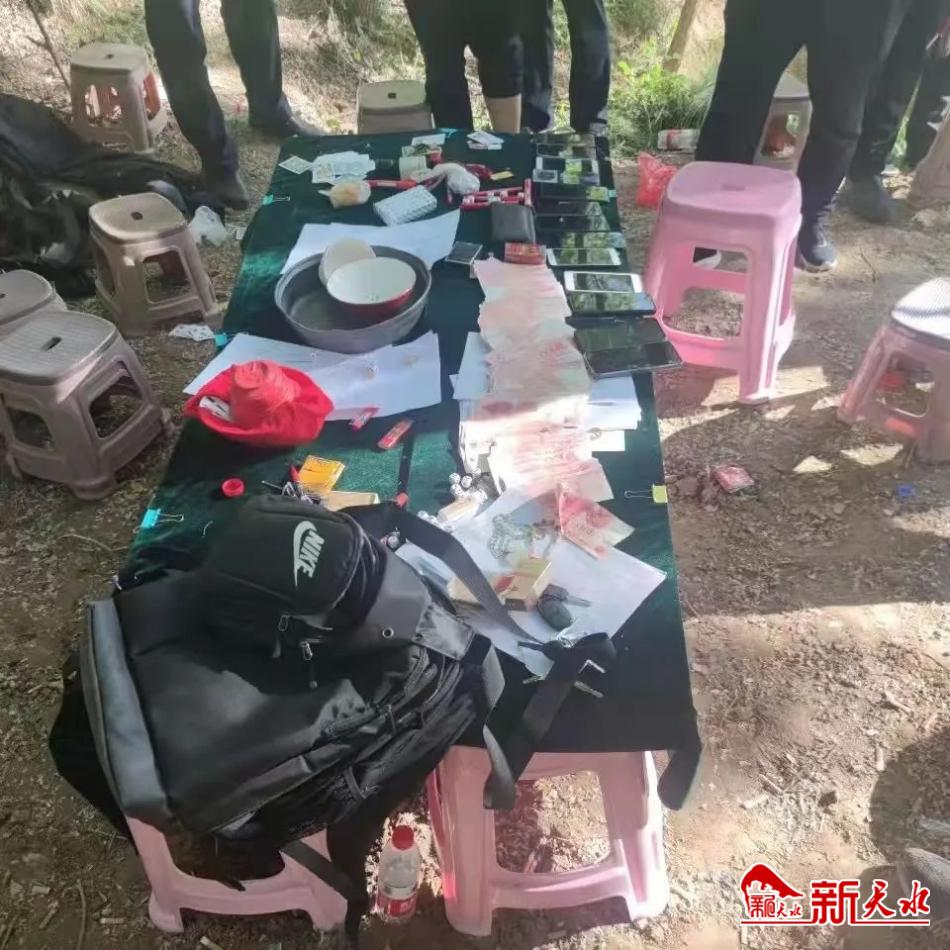 新天水讯【记者蔚军平】为了躲避打击,选择在乡镇的林地果园里聚众赌博,秦州公安分局经过前期调查摸排,于近日一举抓获了20名聚众赌博人员,现场查扣赌资5.7万余元。