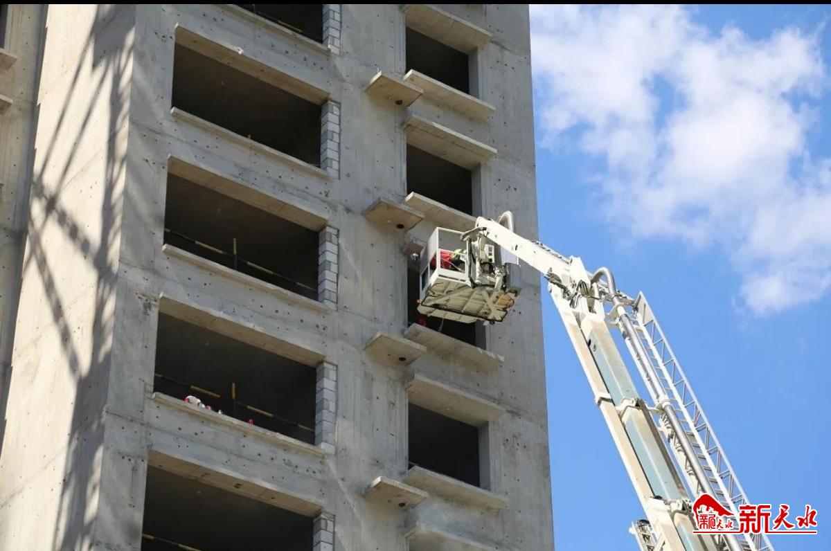 新天水讯【记者蔚军平】近日,天水市住建、应急、消防等部门在天水师范学院专家教师公寓项目部开展了主题为“遵守安全生产法,当好第一责任人”的高层建筑应急救援演练,进一步提高高层住宅小区的火灾防控能力,做好建筑施工领域安全生产及事故应急处置工作。