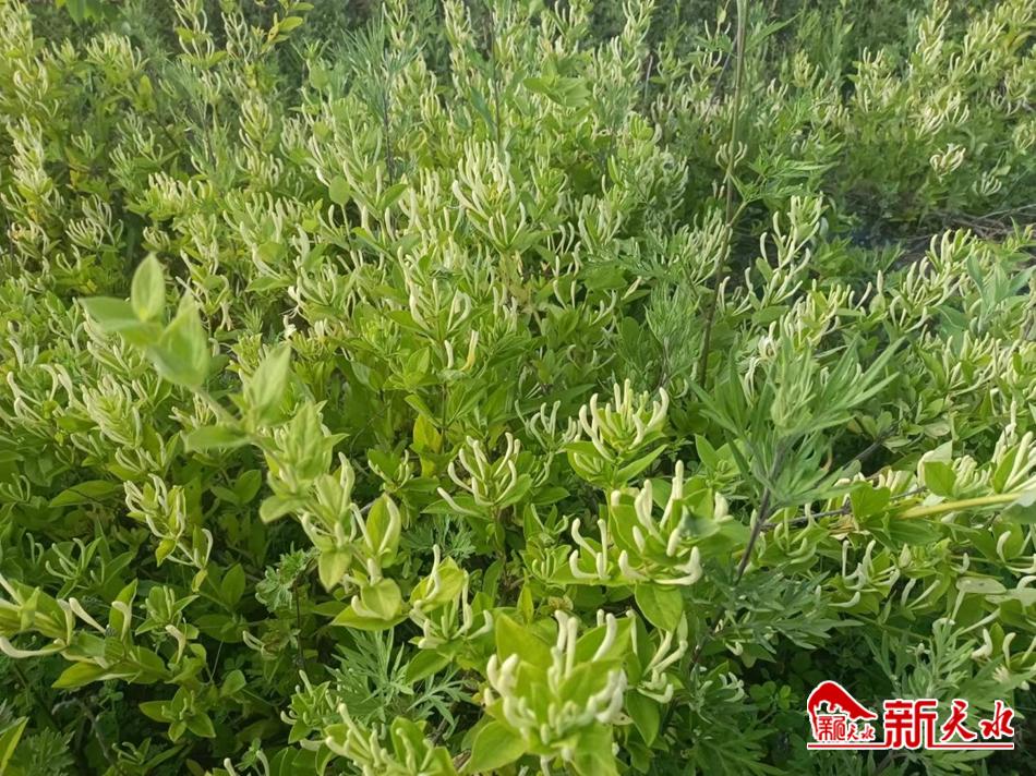 新天水讯 夏日的清水县秦亭镇长沟村植被茂密、风景怡人,“致富花”种植田里绿油油的金银花枝条上,花开喜人,白的清丽,黄的高贵,沁人心脾的花香迎面扑来,让人顿感神清气爽。