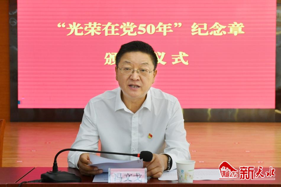 冯文戈代表市委向全市1955名获颁纪念章的老党员表示衷心的祝贺,向全市所有为革命建设和改革发展事业作出贡献的老党员、老同志致以崇高的敬意,向辛勤奋战在全市各条战线的广大党员和党务工作者们致以诚挚的祝福和亲切的问候。他说,向老党员颁发纪念章,就是要牢记他们为党和人民事业作出的重要贡献,并在全党全社会营造尊重老党员、学习老党员、关心老党员的广泛共识。