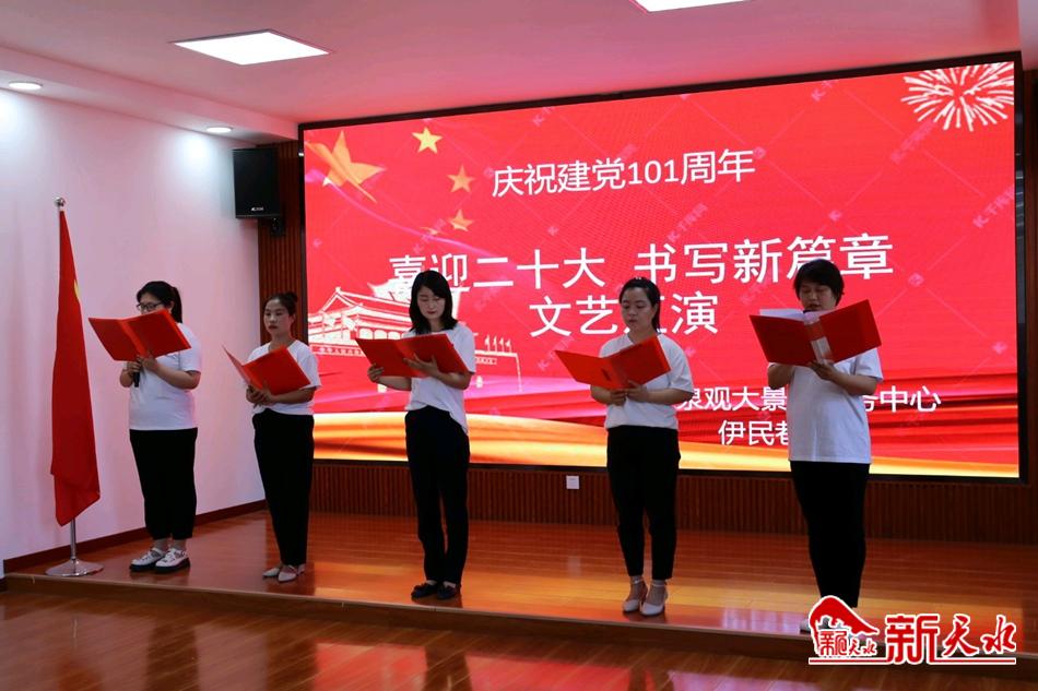 新天水讯【通讯员马岚】6月29日下午,秦州区玉泉观大景区主办,伊民巷社区协办的“喜迎二十大•书写新篇章暨庆祝中国共产党建党101周年”文艺汇演在玉泉观景区游客中心举行。