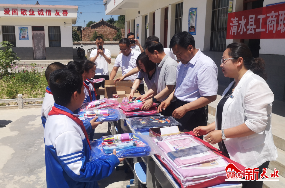 新天水讯【记者吴丽娜】在“七一”建党节来临之际,6月30日,清水县工商联联合清水县顺捷驾校负责人爱心走进金集镇曹沟小学开展庆“七一”关爱儿童捐赠活动。