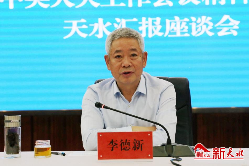 新天水讯【记者马凯】6月29日至30日,省人大常委会党组成员、秘书长、机关党组书记李德新带领调研组来天水,就贯彻落实中央人大工作会议精神和人大工作情况进行专题调研。