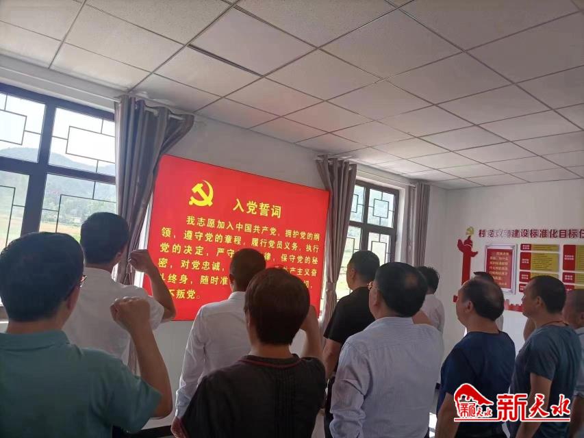 在高桥村党群服务中心,参与活动的全体党员重温了入党誓词。随后举行的座谈会上,天水日报社副总编辑、第三党支部书记胡江为全体党员讲授党课,山门镇党委副书记、镇长刘冰向天水日报社长期以来对高桥村的帮扶表示了感谢,并就今后如何开展好党建工作提出了具体要求。