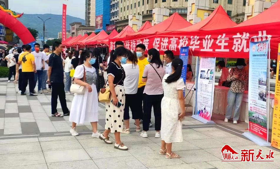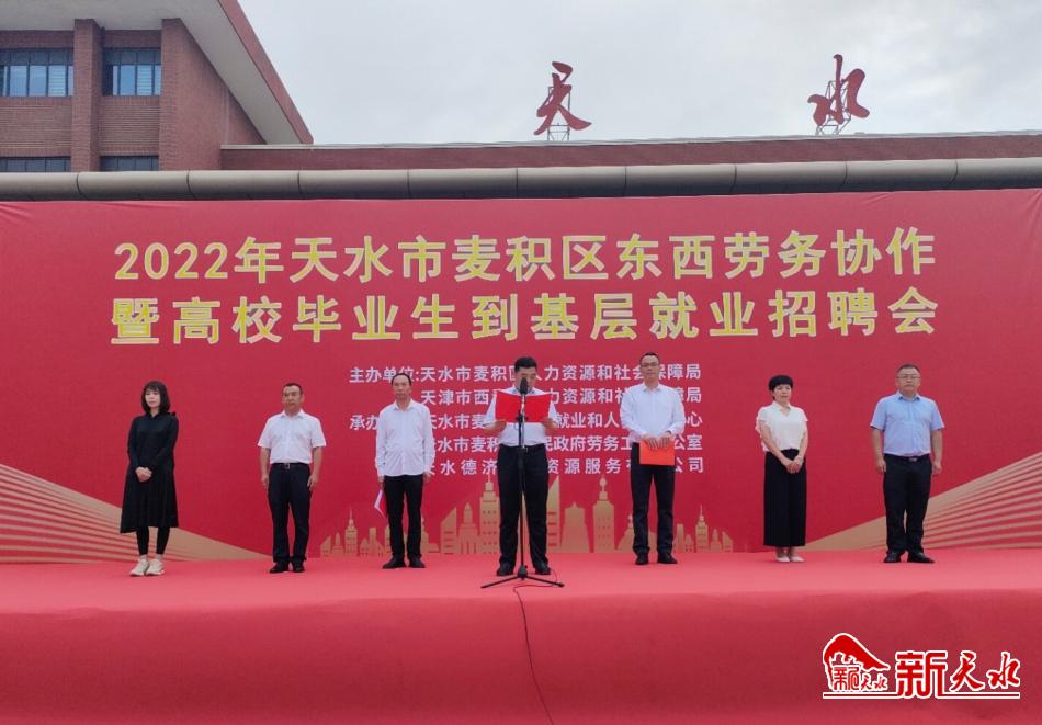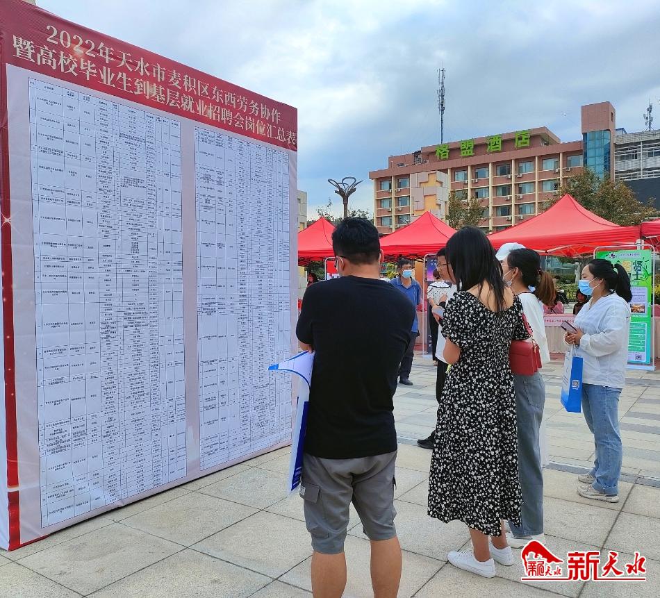 新天水讯【记者 洪野】7月2日,麦积区在火车站广场举办了2022年东西劳务协作暨高校毕业生到基层就业招聘会。
