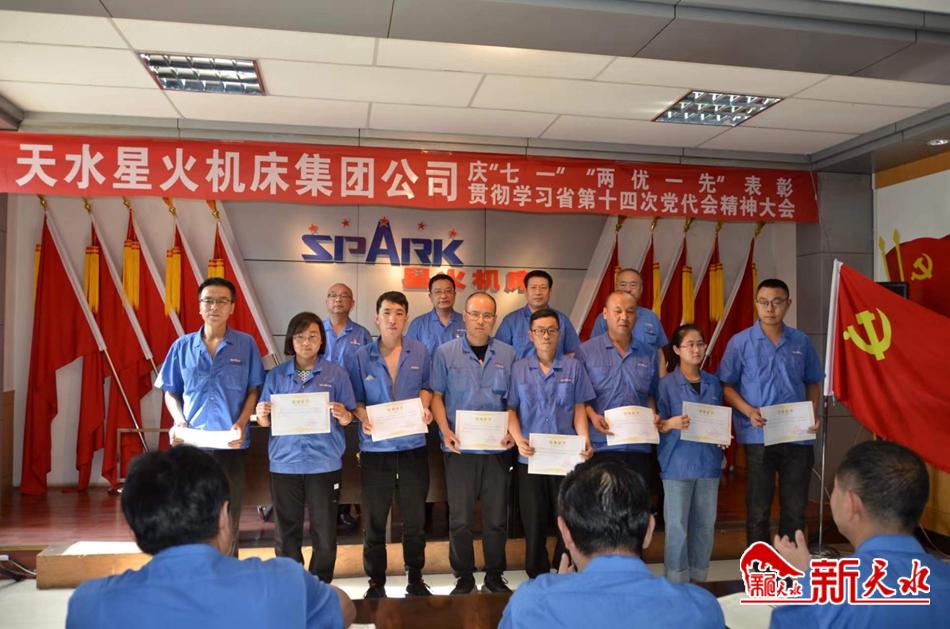 新天水讯 “七一”前夕,天水星火机床公司召开“两优一先”表彰大会。公司党委班子成员,各基层党(总支)支部书记、党员代表、发展对象,以及受到表彰的优秀共产党员、优秀党务工作者和先进基层党组织代表约60人参加会议。