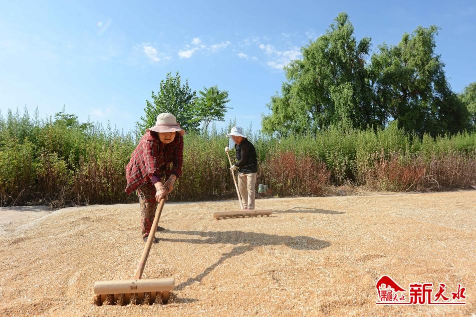 7月4日,天水市农业科学研究所小麦研究中心和油料研究中心的工作人员正在晾晒 小麦、油菜籽。