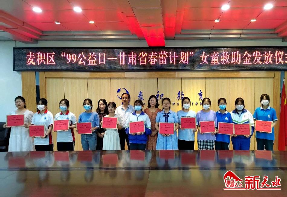 新天水讯【特约通讯员 窦耀辉】7月4日,麦积区妇联联合区教育局举办“99公益日—甘肃省春蕾计划”助学金发放仪式。