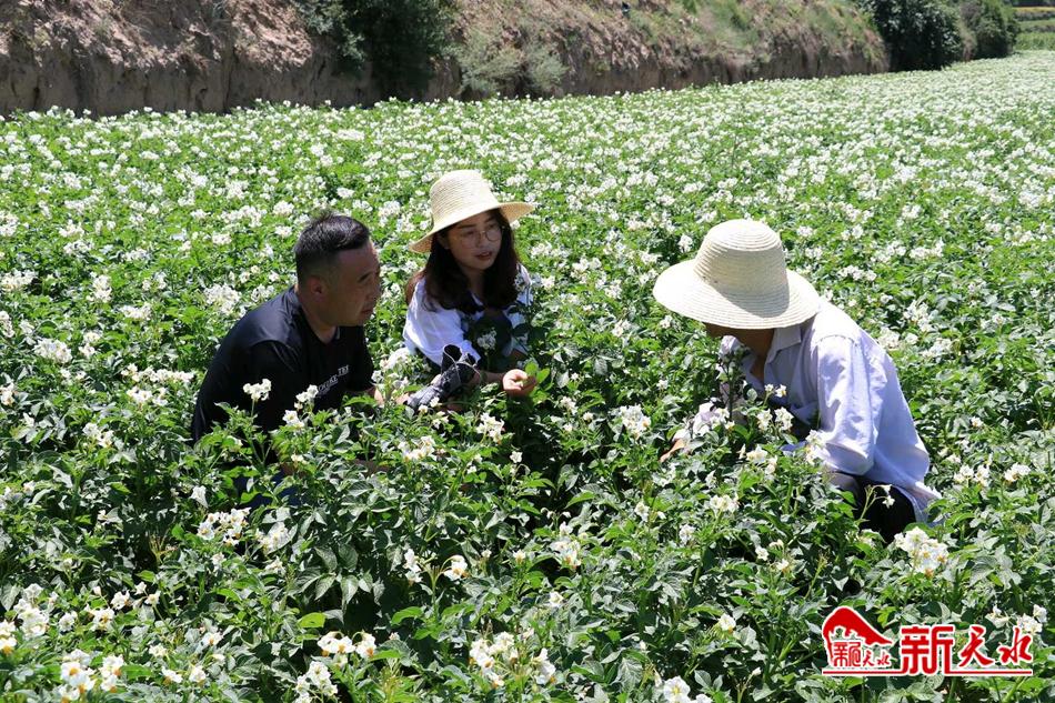 在河程村马铃薯种植基地,镇、村干部正在查看马铃薯长势,对下一步田间管理进行分析研判。“我们村上连片种植的是3000亩,加上其他地方散种的估计有5000亩左右,现在正处于开花期。”河程村党支部书记管双富介绍,这两年村上办起了土豆粉加工厂,拓宽了马铃薯的销售渠道,“让群众对马铃薯种植兴趣更高了”。同时,为了鼓励种植,镇上还对种植户免费发放种子和农家肥,降低种植成本。 榆盘镇地处武山县北部,总耕地8.5万亩,土壤肥沃,非常有利于马铃薯的生长,是全省马铃薯之乡、全市优质马铃薯良繁基地。