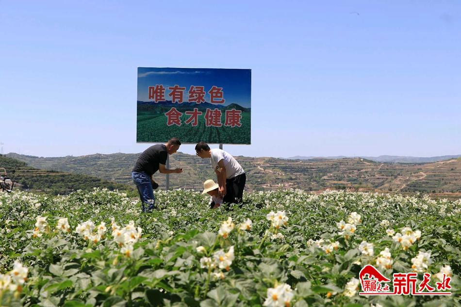 新天水讯【特约通讯员 郭永强 康正东 赵超】盛夏时节,马铃薯之乡武山县榆盘镇,漫山遍野的马铃薯迎来开花季,朵朵洁白的花瓣竞相绽放,迎风摇曳,散发出的浓郁香味弥漫空气,让人沉醉。