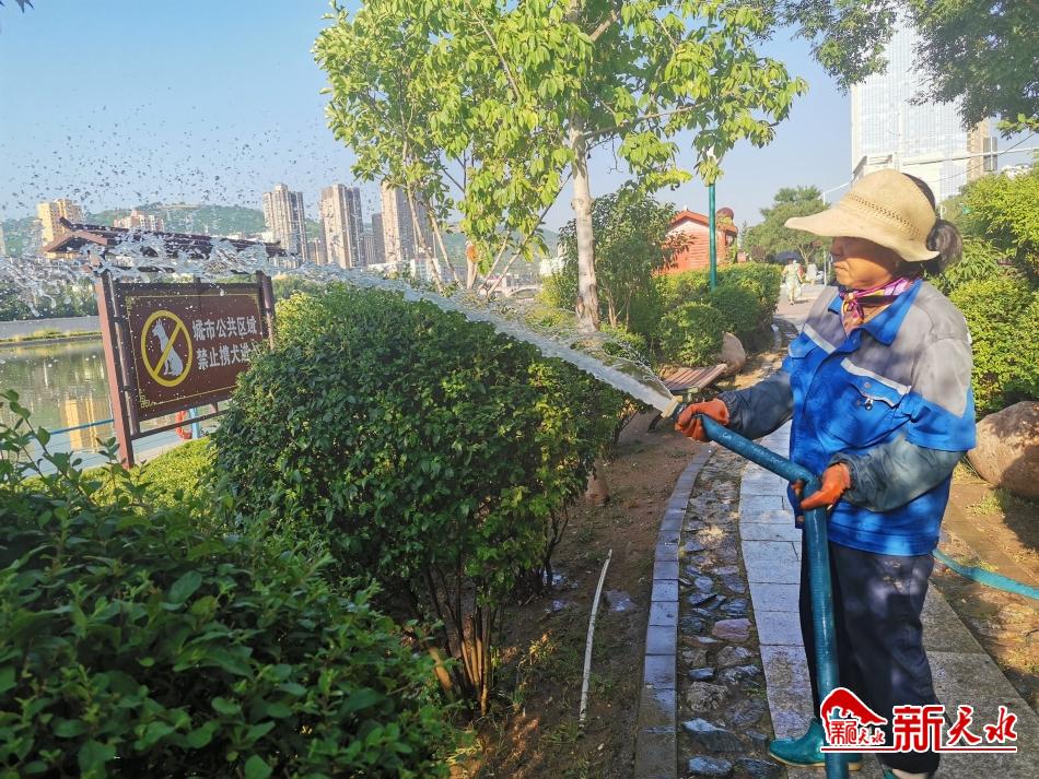 “三分种、七分养。”近段时间持续高温天气让绿植苗木也开始受到炙热“烤”验。为保障绿植苗木茁壮生长,天水湖管理处工作人员开展保绿工作,扎实做好绿化养护工作。