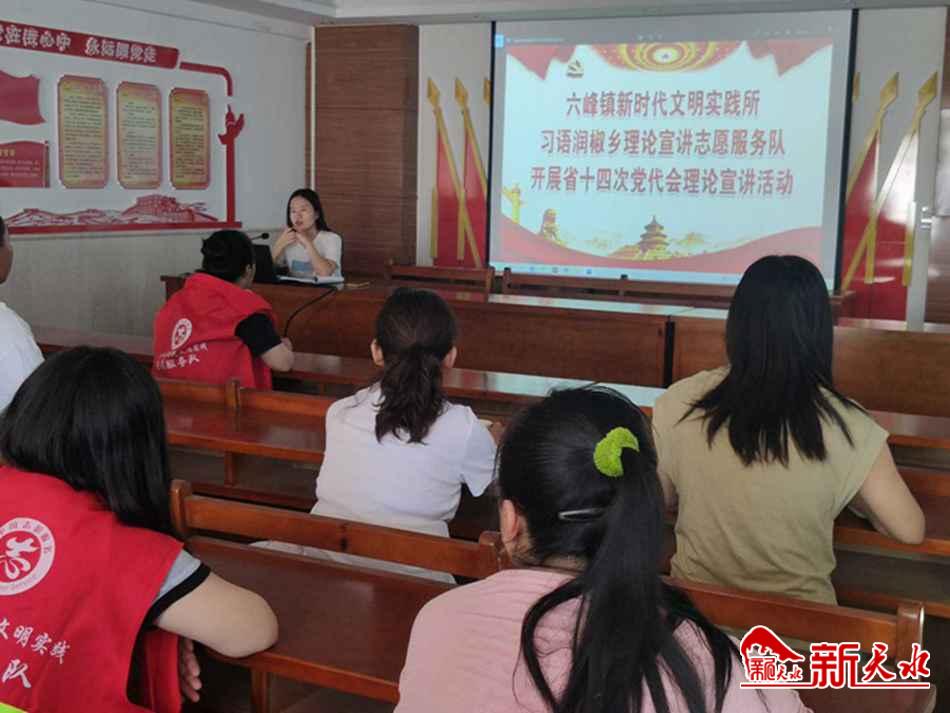 这次宣讲活动由六峰镇新时代文明实践所“习语润椒乡”和“德润六峰”两支特色理论宣讲志愿服务队主办,联合六峰社区、新庄村委等单位协办。在炎炎夏日,为广大人民群众带来妙趣横生、多姿多彩的宣讲生活。宣讲活动以“站所+志愿者+群众”实践模式,通过实践所“搭台”、志愿者“唱戏”,“讲评帮乐庆”的形式,让广大群众当好新时代文明实践的“主角”。让专家学者讲理论,让镇上的领导干部讲政策,让百姓、让群众讲故事,让道德模范讲奉献,让最美媳妇、最美婆婆讲巾帼担当,让青年讲传承。实现了让党的创新理论“飞入寻常百姓家”。