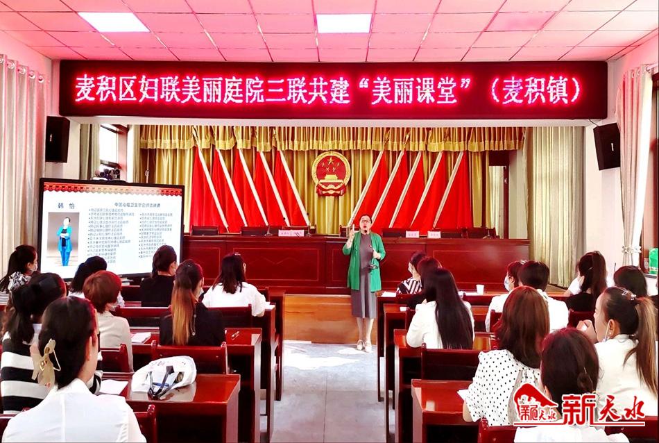 麦积区妇联在麦积镇举办了美丽庭院三联共建“美丽课堂”,国家二级心理咨询师、全省家庭教育讲师团骨干教师韩怡就母亲素质提升、家风家教、家庭教育等内容进行授课。韩老师亲切、生动的授课方式给学员们留下了深刻的印象。整场课程内容丰富、简单易懂,深受学员们欢迎。学员们纷纷表示今后将主动增强注重学习、自我关爱、热爱生活意识,做一名健康美丽的新时代女性。