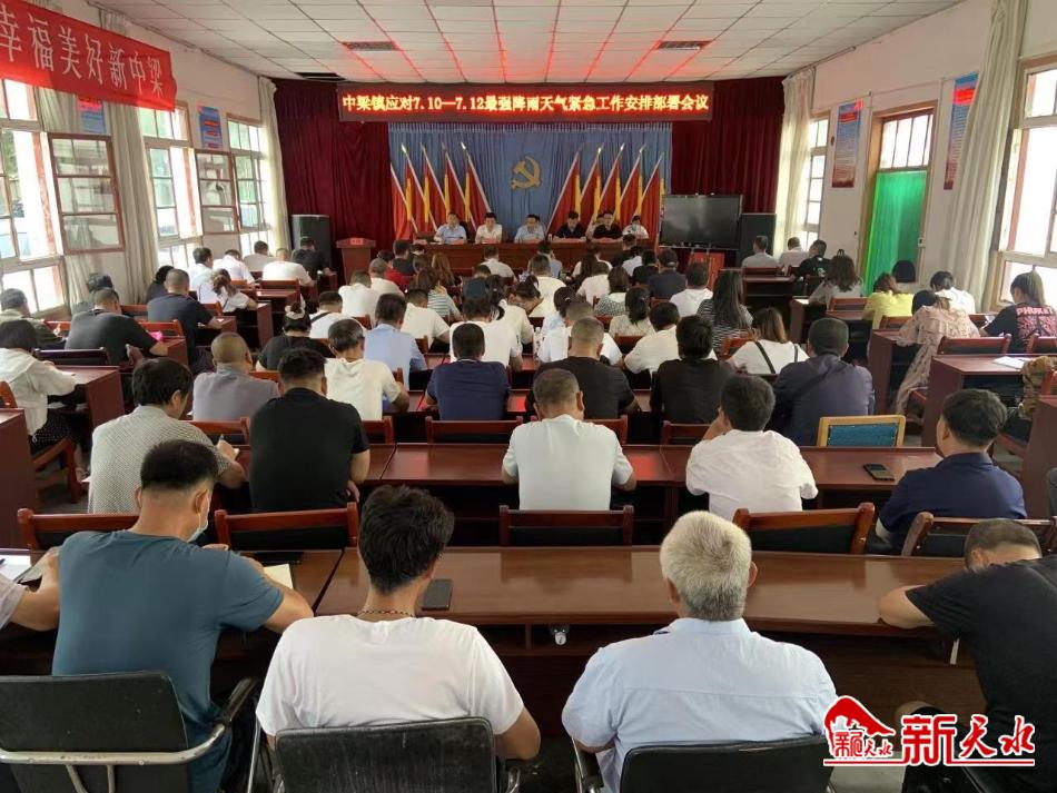 新天水讯【通讯员 陈婷】7月10日上午, 秦州区中梁镇召开防汛工作安排部署专题会议,传达学习市、区有关做好应对近日强降雨工作相关会议精神,通报了本轮强降水天气情况,并就当前做好应对强降雨天气工作进行了具体的安排部署。