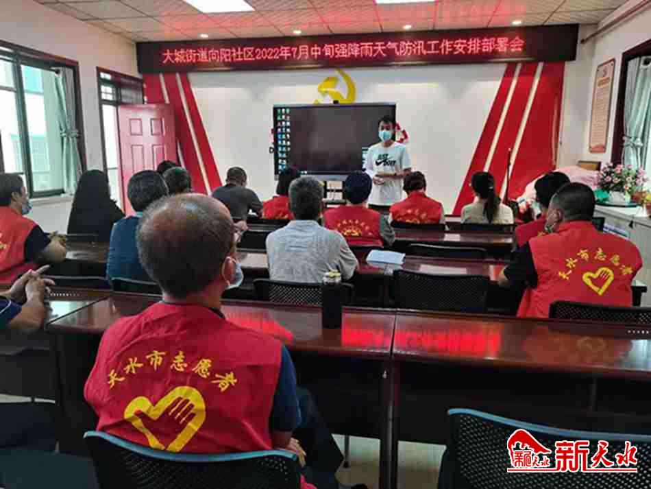 新天水讯 7月10日上午,秦州区大城街道向阳社区召开强降雨天气防汛工作安排部署会,社区干部、应急队员、党员志愿者、群防群策员等人员参加会议。