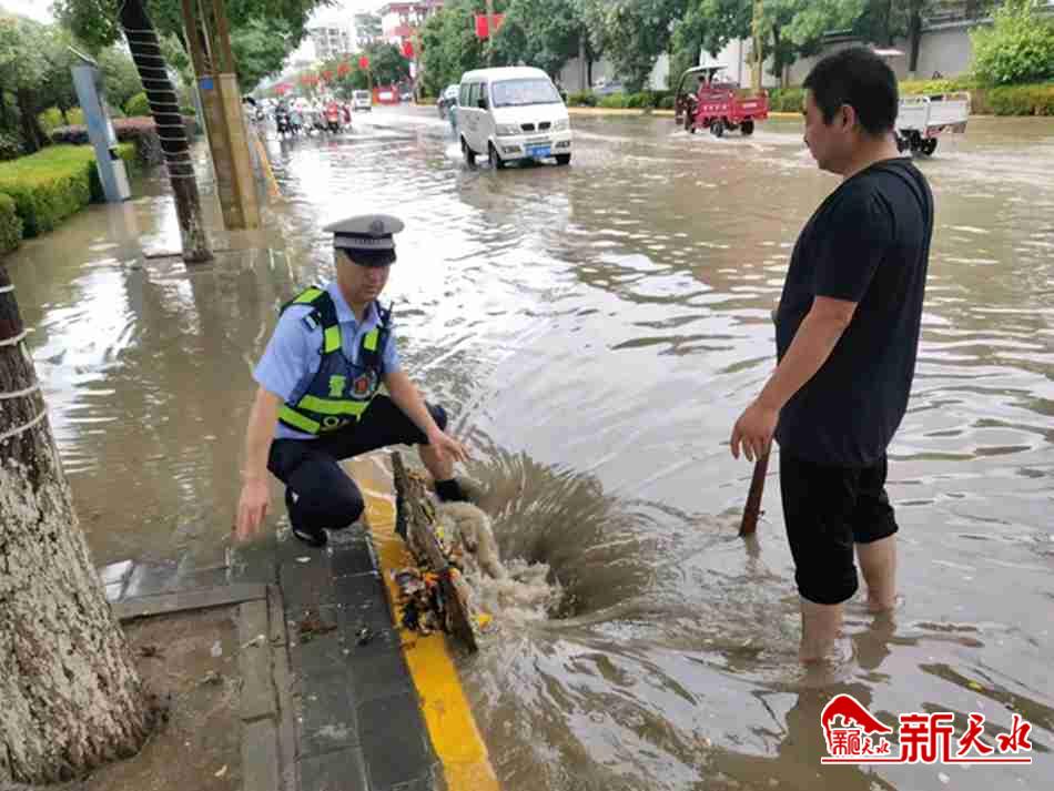 秦安公安交警:疏通路面积水下水管道保畅通