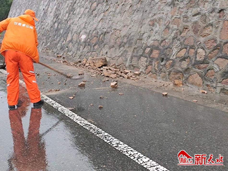 新天水讯【通讯员 冯文茜 胡艳红】7月12日,受连续强降雨影响,导致清水县境内公路发生小范围零星落石,影响群众安全出行。