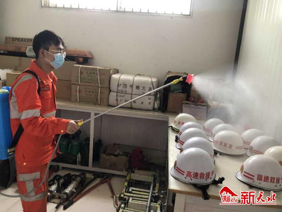 做好办公、住宿区域的日常消毒通风,在巡查和清障救援工程中,严格做好个人防护,戴好口罩和一次性手套,穿好防护服。同时,严格要求被施救人员出示“两码一证”并做好体温检测。每次救援结束归队后“人、车、物”全面消毒工作,坚决阻断疫情沿高速公路传播的途径、消除疫情输入风险。