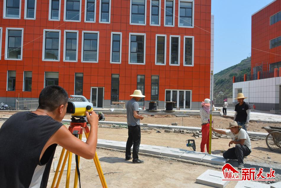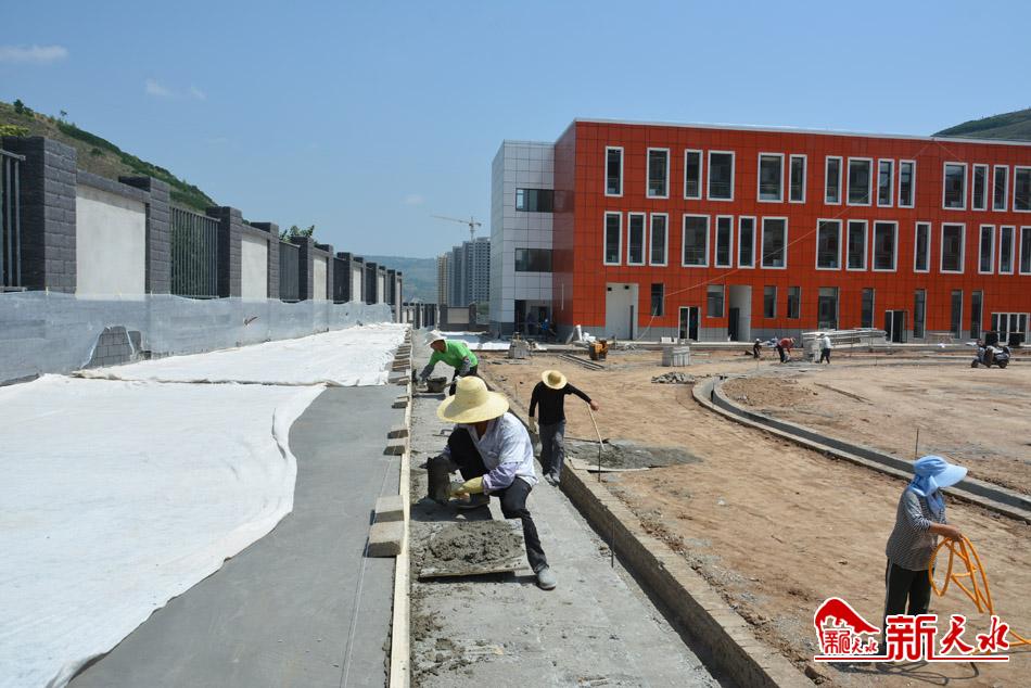施工单位天水博实建筑工程有限公司现场负责人柳永刚告诉记者,在前期完成刘家庄小学主体工程的基础上,从今年5月下旬开始实施附属工程,包括学校围墙、大门、供排水、供热、天然气、行政楼吊顶等,现在已经完成了80%的施工量,目前,学校大门以及操场地坪、看台正在进行收尾施工,整个工程预计在7月下旬完成。