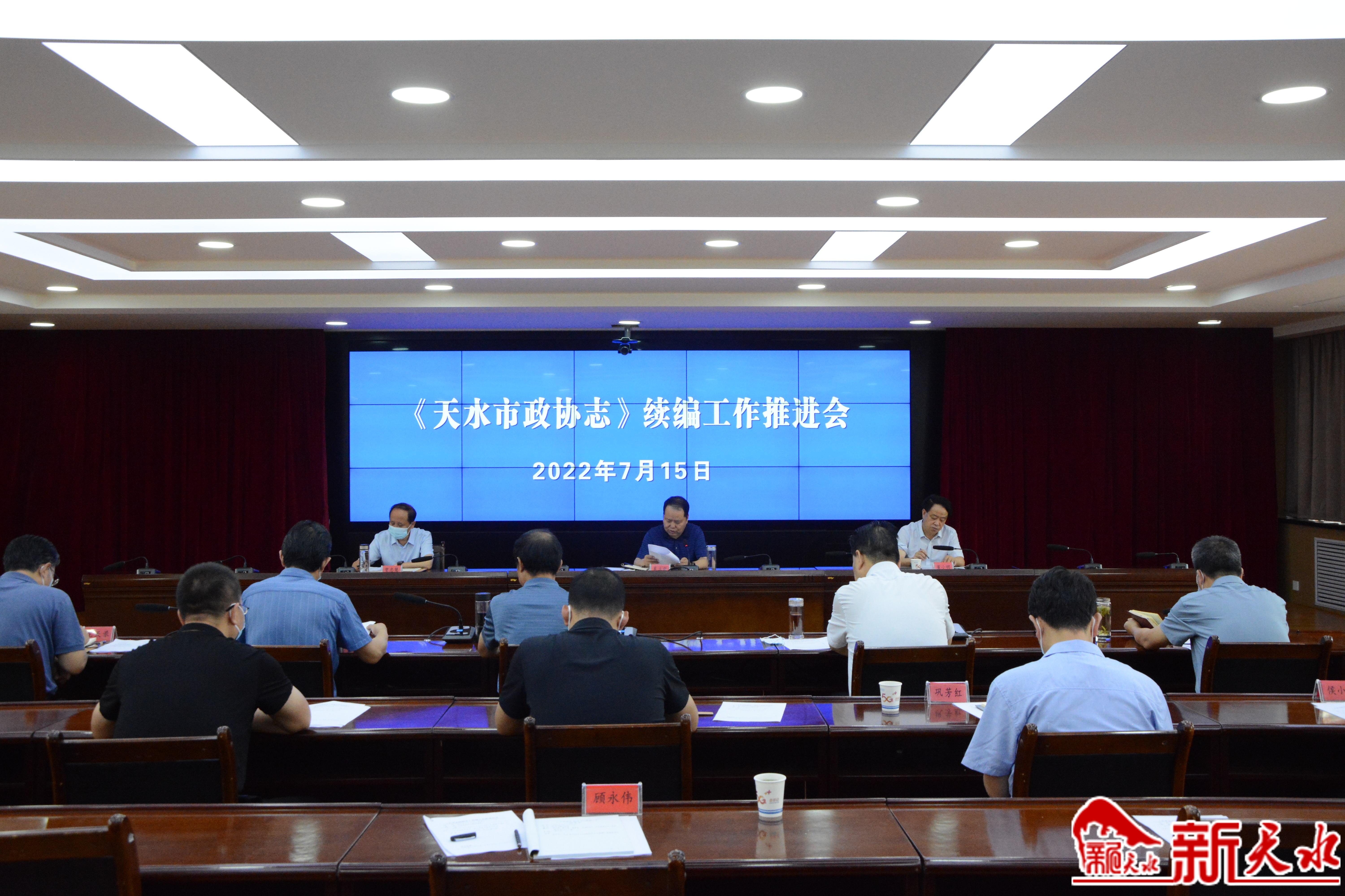 新天水讯【记者 李欣桐】7月15日,市政协召开《天水市政协志》续编工作推进会。市政协党组成员、副主席吴立新出席会议并讲话,市政协党组成员、秘书长董小明主持会议,市政协党组成员贾忠慧,市政协各委办主任、副主任参加会议。