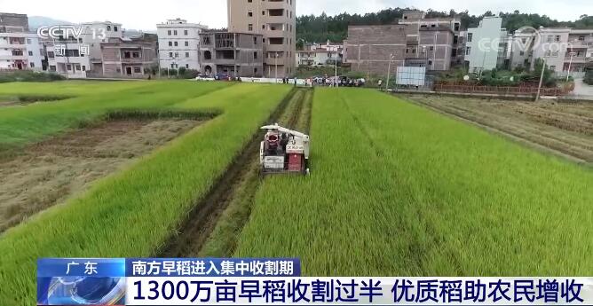 广东:1300万亩早稻收割过半 优质稻助农民增收