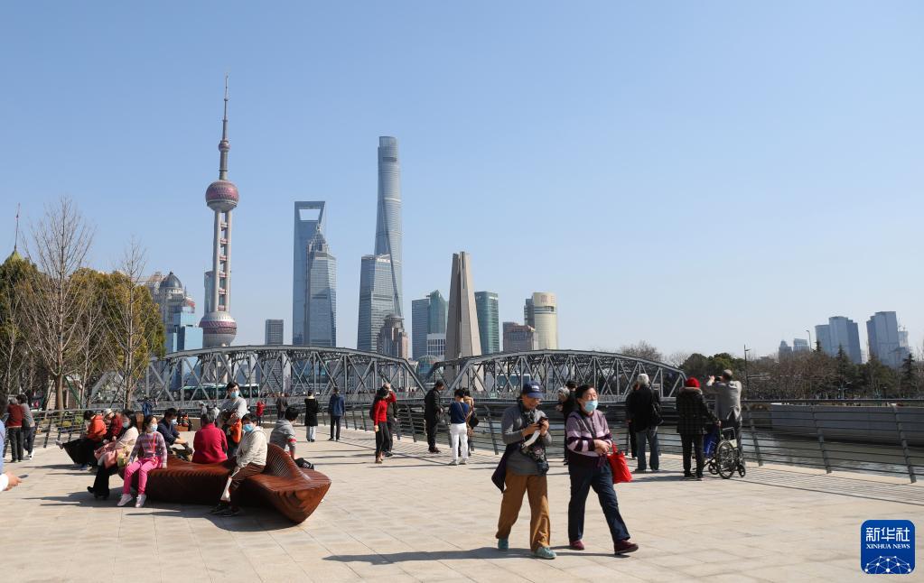 人们在上海苏州河边漫步休闲(2021年2月21日摄)。新华社记者 方喆 摄