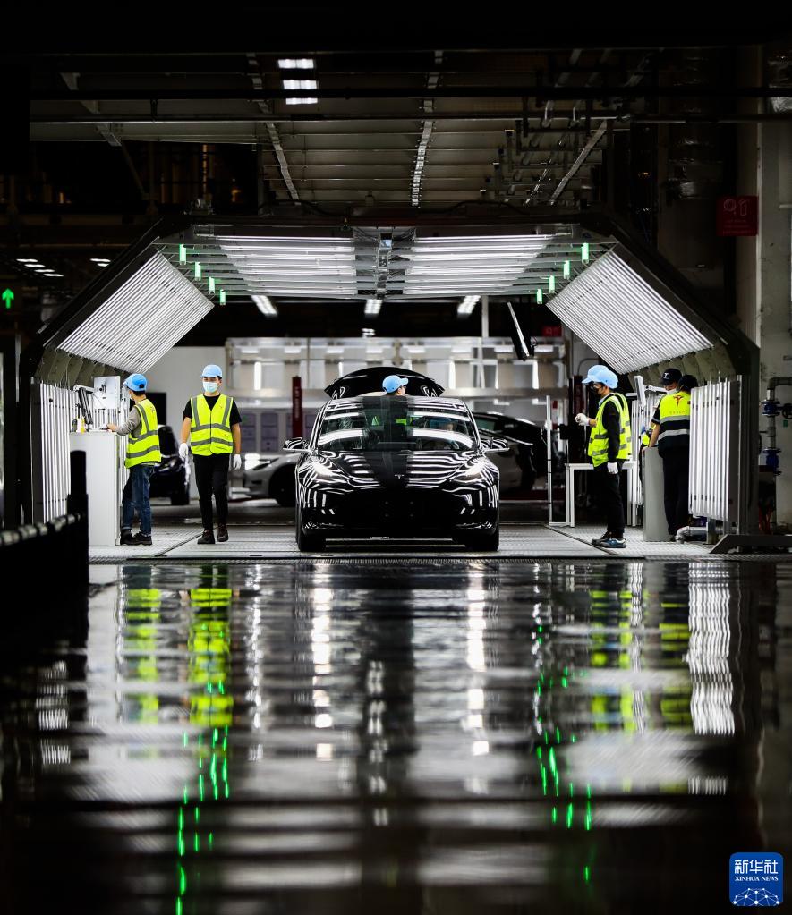 工作人员在特斯拉上海超级工厂内作业(2020年11月20日摄)。新华社记者 丁汀 摄