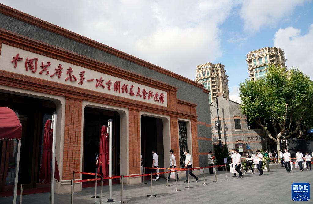 人们走进中共一大纪念馆参观(2022年7月1日摄)。新华社记者 刘颖 摄