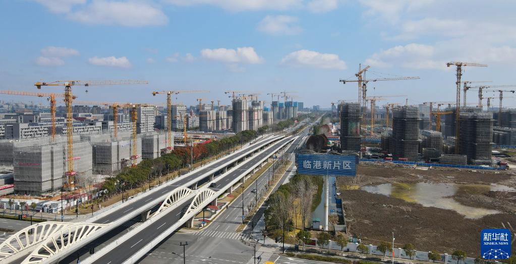 在中国(上海)自由贸易试验区临港新片区拍摄的住宅区建设现场(2022年2月10日摄,无人机照片)。新华社记者 方喆 摄