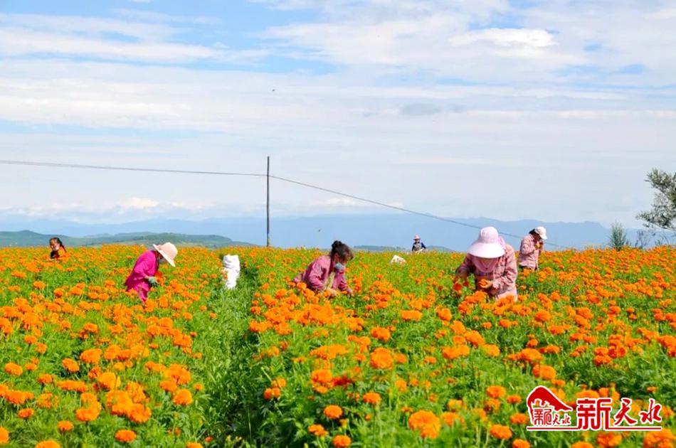 眼下正是万寿菊盛花期,清水县丰望乡的两千余亩万寿菊进入成熟采摘季,放眼望去,成片的万寿菊花开正艳,群众穿梭在花海间正忙着采收。