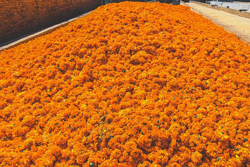 采摘下来的鲜花将运往三台铺村委会老邓耳万寿菊收购点。从7月11日开称以来,收购点目前已收购鲜花1000余吨。