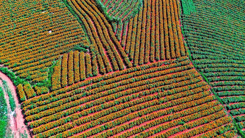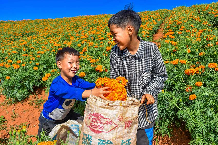 云南开远:万寿菊开采摘忙 丰收喜悦映脸庞