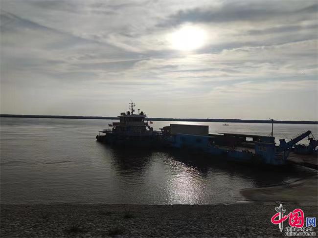 ▲位于荆州二期河道整治工程第13标段的湖北荆州石首三义寺汽渡。中国网记者 彭瑶 摄