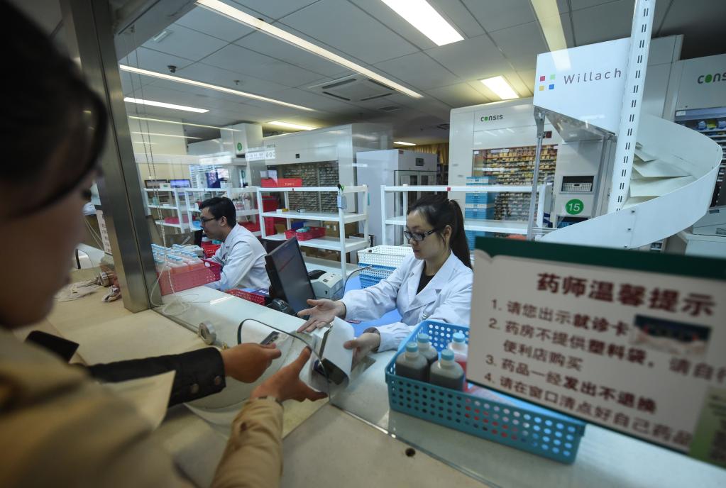 北京协和医院的药师给患者发放药物。新华社记者罗晓光 摄
