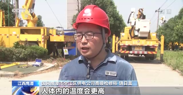 国网鹰潭市余江区供电公司高级检修师 饶日嵩:绝缘服的话是在外面再套了一层这个屏蔽的,所以我们的实际上人体内的温度会更高。对我们的作业人员来讲,是一个很大的挑战。