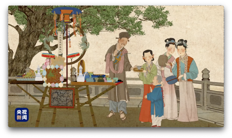 除了吃冰,古人还会制作各种解暑“饮料”。北宋画家张择端的《清明上河图》中有卖“香饮子”的店面,宋代孟元老的《东京梦华录》中有“冰雪冷元子”“甘草冰雪凉水”等冰食。