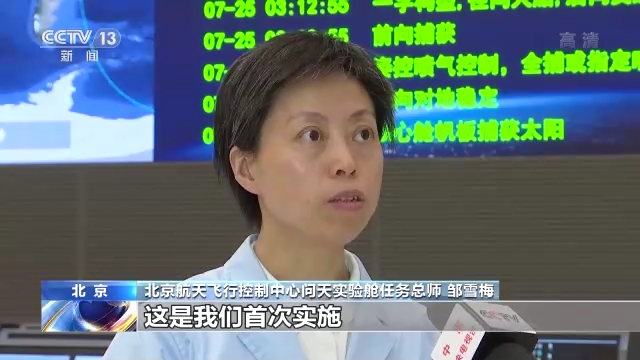 北京航天飞行控制中心问天实验舱任务总师 邹雪梅:这是我们首次实施大型舱段在轨的交会对接,也是首次采用半自主的快速交会对接的方式。总的来说整个交会对接过程控制非常精准,完成得很圆满。