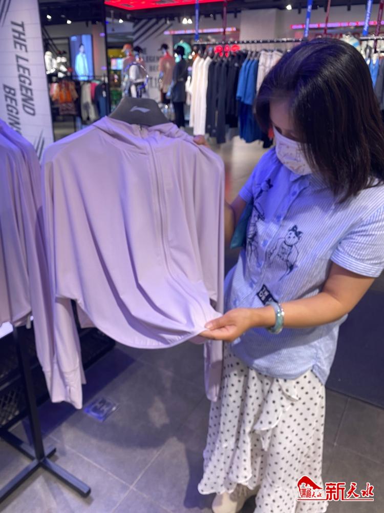 “这款风衣款的女式防晒衣虽然价格在500多元,算是店里最贵的一件,但是因为款式新颖,搭配休闲、职业装都好,所以卖得也是最好的。”在秦州区步行街一家服装店里,店主刘丽对记者说,“以前的防晒服以运动款为主,也没有什么设计感,现在一些高品质的防晒衣除了防晒效果特别好外,服装的设计感也很强,就连袖口、口袋等都美感十足。”