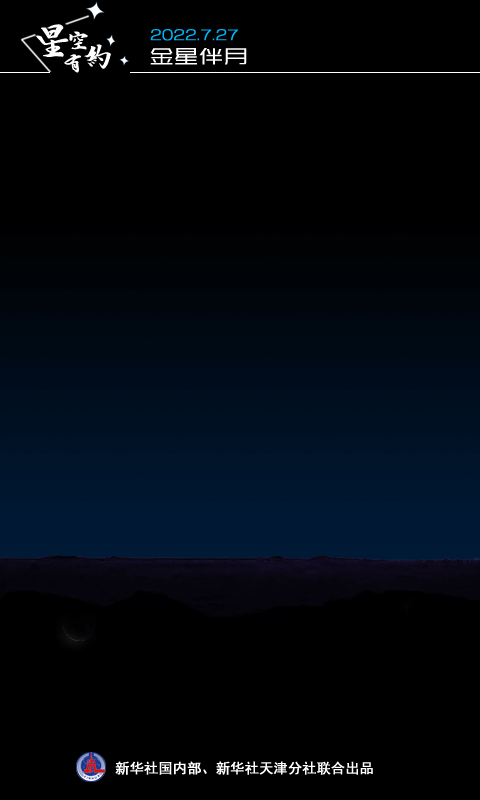 天文科普专家介绍,7月27日凌晨,明亮的金星将与极细的残月形影相随,竞放光芒,在朦胧天色中格外醒目,成为天边一道亮丽的风景线。届时如果天气晴好,我国感兴趣的公众可在天亮前朝东方偏北的低空方向进行观测,肉眼清晰可见这幕美丽的“星月童话”。