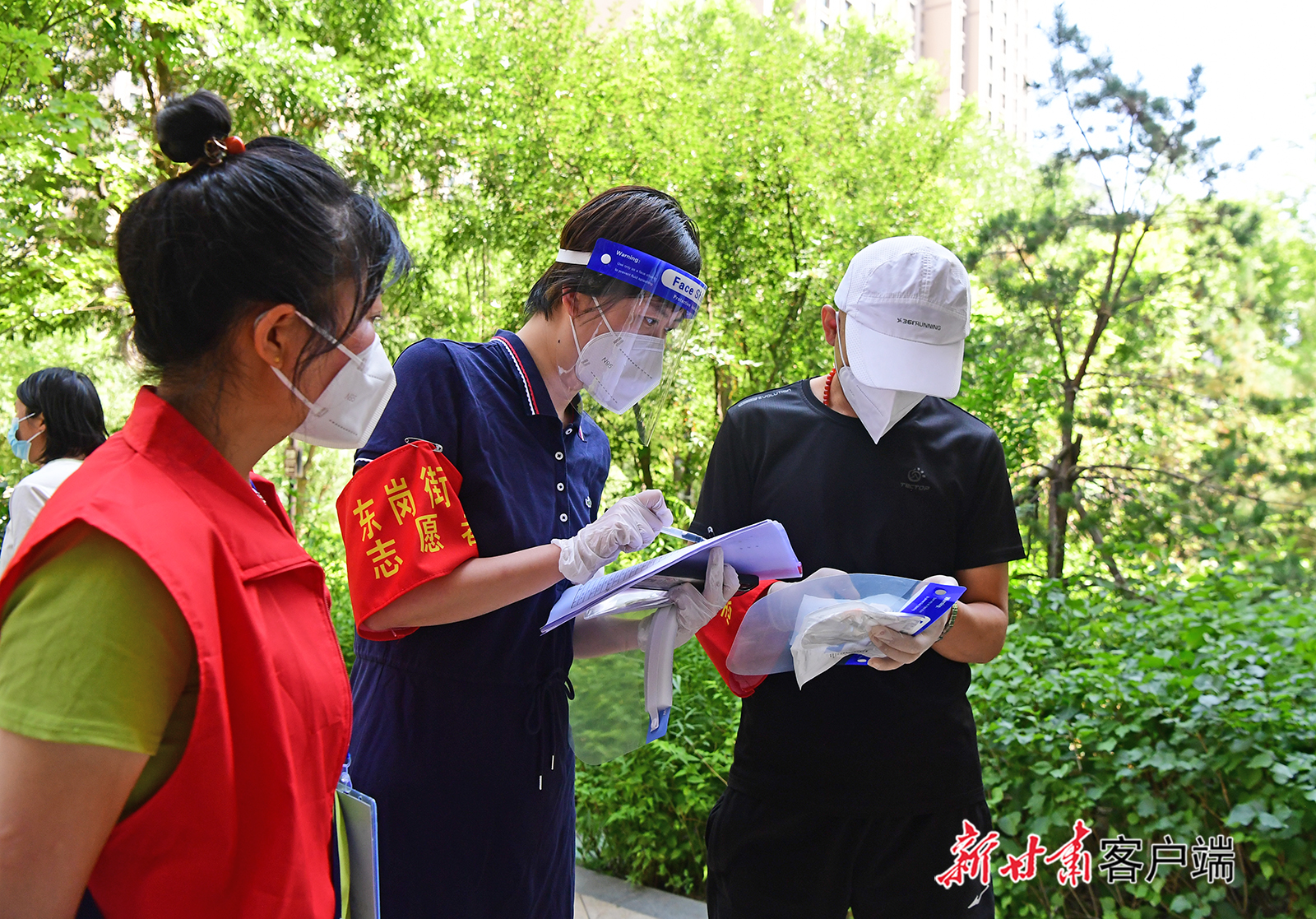 兰州市社区工作人员与志愿者核对核酸采样数据。新甘肃·每日甘肃网记者 冯乐凯