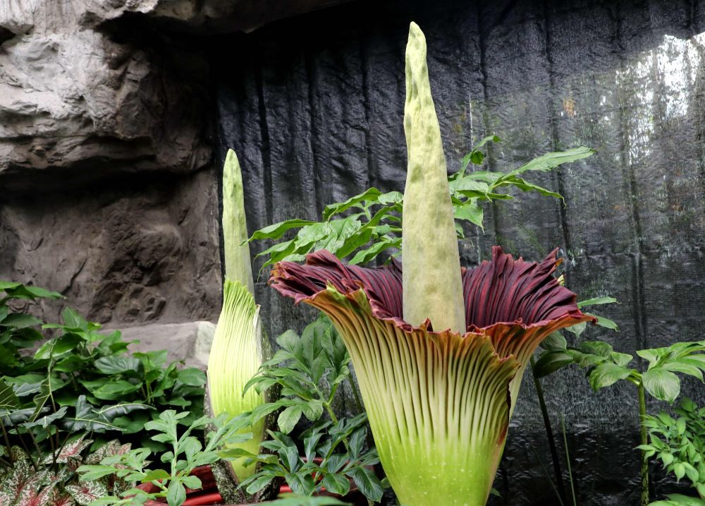 巨魔芋是一个“臭名远扬”的花。如果你靠近,一股腐臭味会立刻扑鼻而来。据悉,开花时,巨魔芋会释放自己合成的、含100多种化学物质的气体,这体现了这一“限时开花”植物的“生存智慧”。