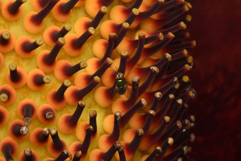 “巨魔芋的花期非常短,特别是它的雌花只在第一天晚上开放。为了在短期内提高繁殖效率,它就散发出臭味吸引食腐昆虫来给它授粉。为了让臭味散发得更远,它还自己产生了散热机制,通过高大的附属器也就是花序上部烟囱状的器官,把气味能传播到几公里之外。但在第二天,基本就闻不到臭味了,反而会闻到一些类似热带水果味道的清香。”魏钰解释。