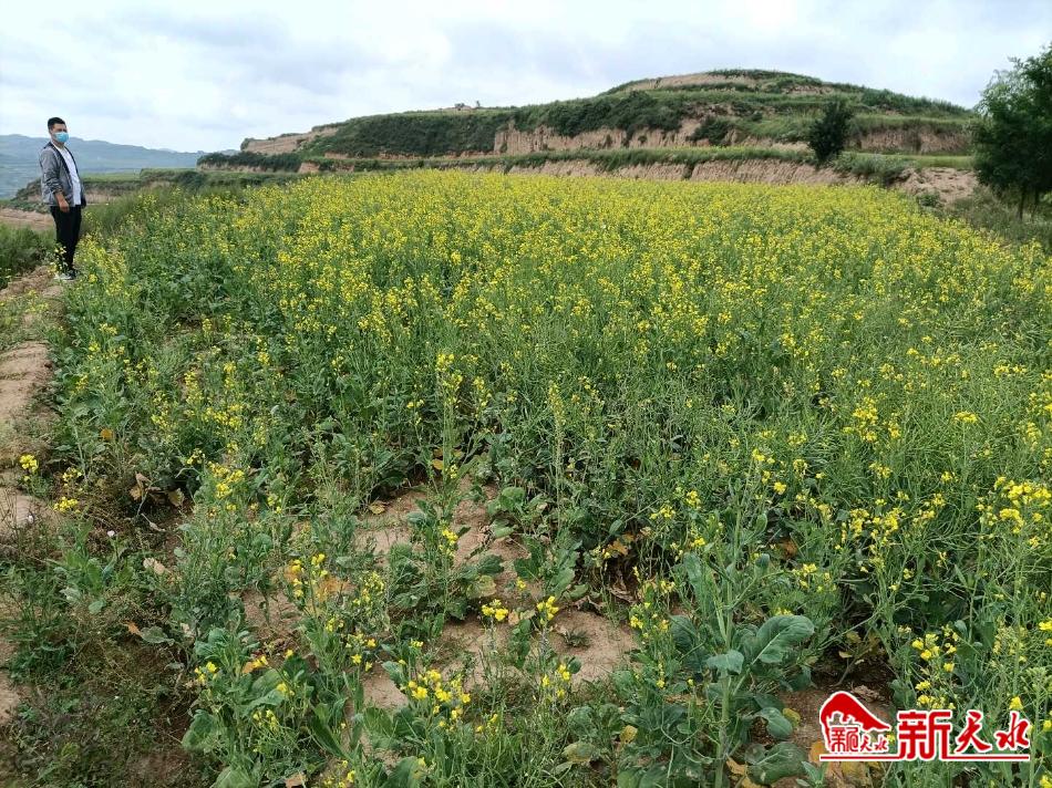 新天水讯 当前,张家川县张棉驿乡庙川村千亩油菜种植点,到处洋溢着油菜花香,一片丰收的景象,油菜花已进入衰败期,再过一个月油菜籽就要丰收,张棉驿乡庙川村绿创合作社负责人张岁平脸上洋溢着丰收的喜悦。“今年我们抢抓政策机遇,积极争取项目,充分发挥资源优势,连片种植春油菜1000亩,从目前长势来看,丰收在望,油菜属经济作物,收入可观,总算今年没有白忙活。”张岁平如是说。