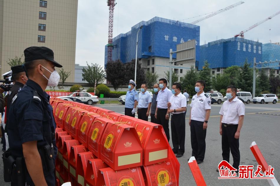 新天水讯【记者马哲】7月26日,天水市人大常委会副主任、市总工会主席张栋梁,副市长、市公安局局长郭庆祥带领市总工会等相关部门负责人,看望慰问疫情防控一线工作人员,并通过他们向奋战在疫情防控一线的党员干部、公安民警、医护人员、志愿者表示衷心感谢和亲切问候。