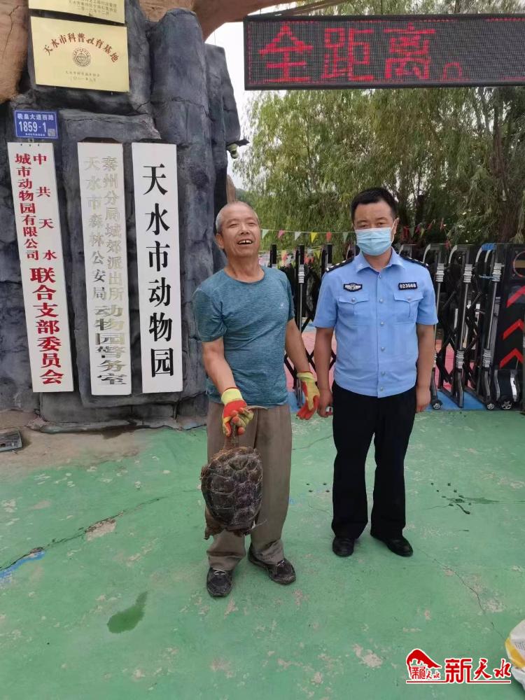 接到谢先生报警后,天水市公安局麦积分局道南派出所民警迅速赶到现场察看,发现是一只鳄龟。随后,民警将鳄龟带回派出所,通过多方联系,于当日下午协同森林警察大队民警将鳄龟送到天水市动物园。