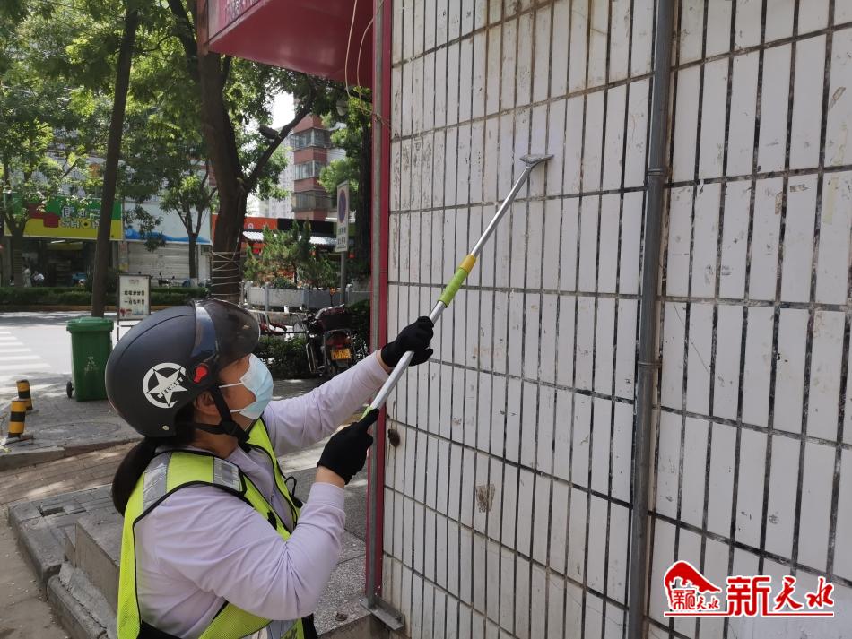 为进一步优化城市环境,维护城市形象,提高城市管理水平,7月27日,秦州区执法局东关中队队员对辖区内的小广告进行整治,为市民创造了一个整洁优美、文明有序的生活环境。 新天水记者 余碧波 摄